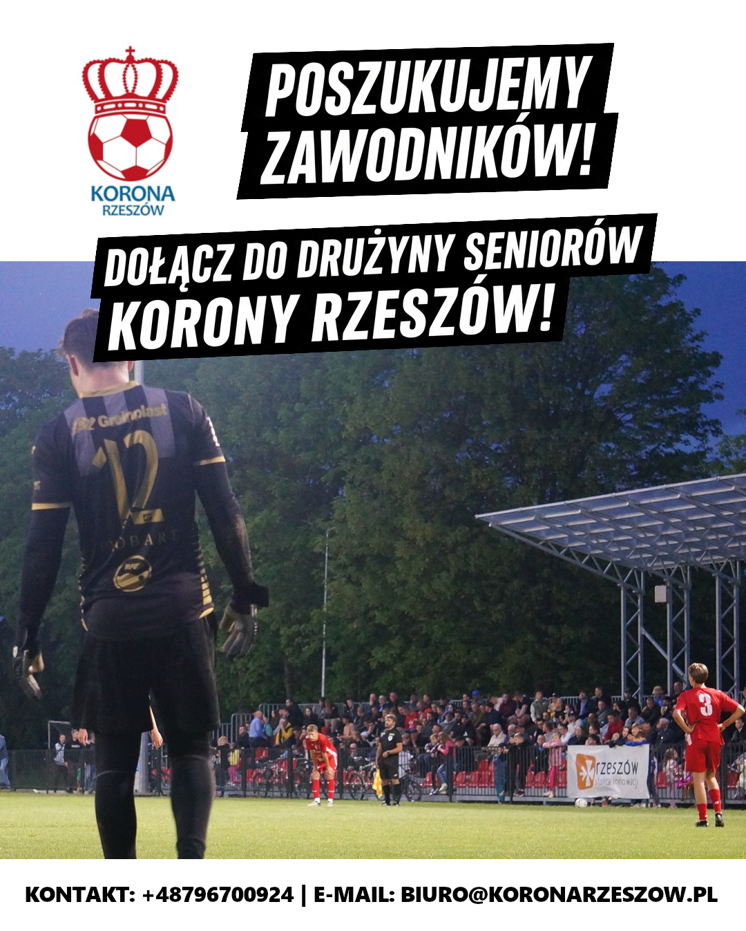 Klub Sportowy Korona Rzeszów ogłasza nabór uzupełniający do kadry seniorów występującej w rozgrywkach Ligi Okręgowej.