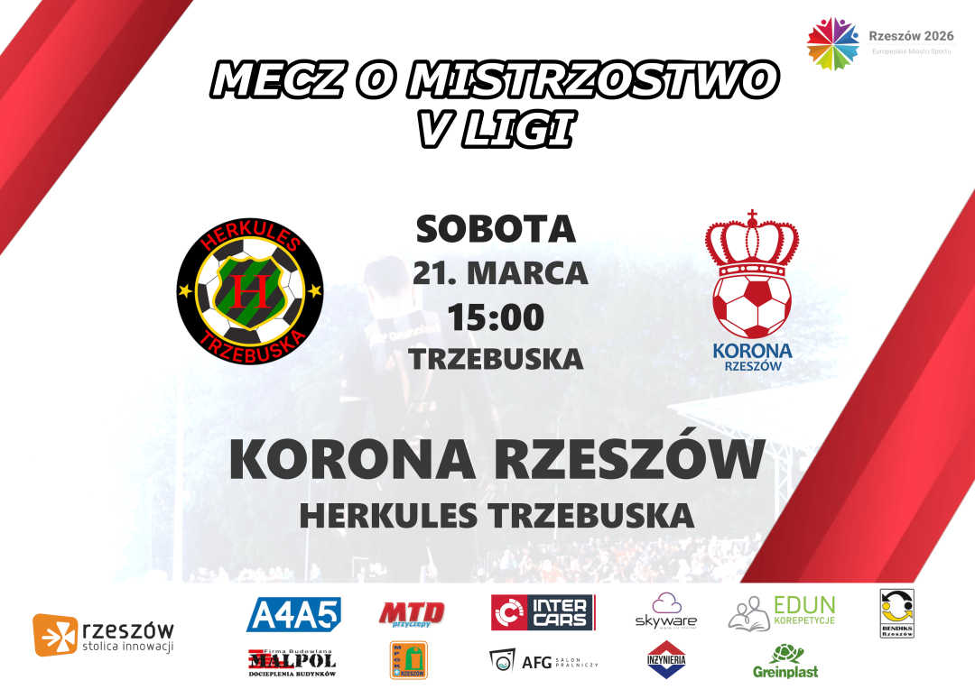 Już w sobotę, 21 marca o godzinie 15:00, czeka nas niezwykle istotne spotkanie w ramach 17. kolejki Ligi Okręgowej. Korona Rzeszów zmierzy się na wyjeździe z Herkulesem Trzebuska.